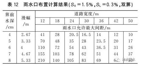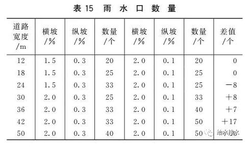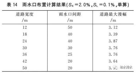 道路坡度調(diào)整表14為道路縱坡為0.1%時的雨水口最小布置間距(滿足表13漫幅要求)。