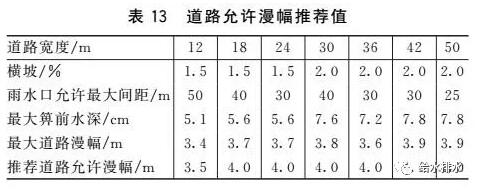 我國尚無明確的道路漫幅規(guī)定,建議有關部門盡快制定相關的標準。在相關標準未出臺前,設計人員計算時采用的道路漫幅可參考表13推薦值。
