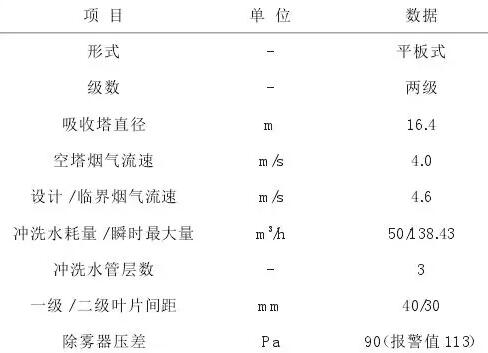 某發(fā)電公司660MW超臨界燃煤空冷機組,鍋爐型號:DG2100/25.4-II2,配套建設有石灰石-石膏濕法脫硫裝置。每座吸收塔頂部安裝兩級水平布置的除霧器,參數(shù)見表1。