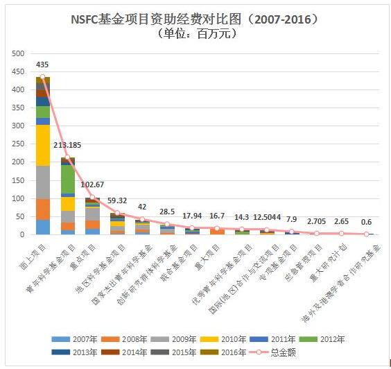 圖10國家自然科學(xué)基金項目資助經(jīng)費對比圖(2007-2016年)
