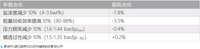 在SED的分析中我們可以得到一些很基礎(chǔ)的重要信息:通過對四個(gè)重要參數(shù)各自改善10%對能耗變化的計(jì)算可以看出,鹽濃度是最顯著的影響因素,而它又主要受濃差極化現(xiàn)象影響。從這個(gè)角度來看,與研發(fā)諸如碳納米管等自身具有高滲透性的膜相比,優(yōu)化系統(tǒng)的流體力學(xué)獲得好處更多。