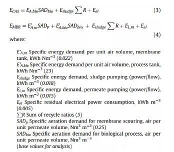 對于經(jīng)典活性污泥法和MBR工藝來說,SED主要貢獻(xiàn)因子是曝氣,除了用于給生物質(zhì)提供氧氣之外,對于MBR,還用于膜的沖洗。