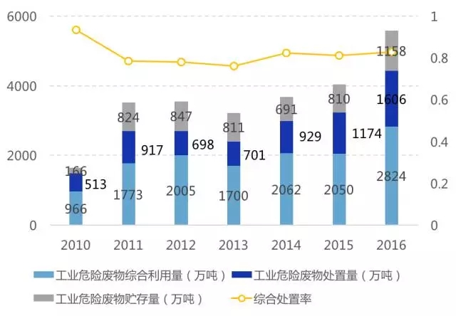16年工業(yè)危廢綜合處置率83%