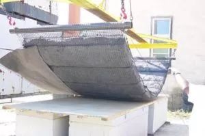 對于活性炭這類沉降性能較差的材料而言,是需要進行預(yù)濕處理以去除材料內(nèi)空氣來幫助減少其水中浮力的。在施工過程中,如果采用此類沉降性能較差的材料,或是遇到水體流速較快不利于施工的情況,可以考慮使用水下擴散器,蛤形或其他抓斗將覆蓋材料帶入水下釋放,幫助其更好的完成覆蓋。另外,使用土工織物包裹AquaGate一類的復(fù)合材料或其他活性復(fù)合材料進行覆蓋,亦可以增加施工的可操作性。一般情況下,這種土工織物是通過機械設(shè)備或潛水員進行水下覆蓋的。這類包裹著活性覆蓋材料的土工織物,例如ReactiveCoreMat材料,在通常情況下覆蓋材料容量較小,厚度也較薄。但如工程需要,也可以通過使用更厚的石龍材料以增大土工織物的覆蓋材料容量,例如:MarineMattress材料便是使用了這一技術(shù)。另外,鉸接式砌塊或其他防護墊,均可用來放置或包裹覆蓋材料。