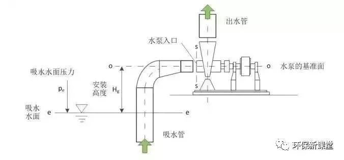 離心泵是輸水中最常用的泵之一,為了避免汽蝕現(xiàn)象的發(fā)生,離心泵的安裝高度需要進(jìn)行非常仔細(xì)的校核計算。水泵進(jìn)水側(cè)裝置形式示意圖如下: