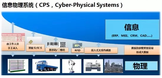 按照德國人的理解,智能化的標志,主要通過信息物理系統(tǒng)和人工智能實現(xiàn)生產制造的智能化。信息物理系統(tǒng)簡稱CPS,S就是信息,P就是物理,硬件生產設備,C是軟件信息化,以前信息物理差距比較大,工作人員要手工錄入信息,工廠里面是數(shù)據(jù)采集、數(shù)字控制,還需要人為往信息系統(tǒng)錄入。
