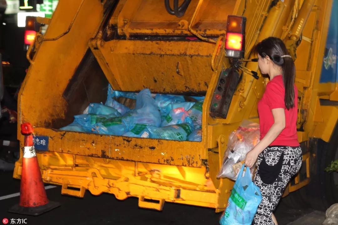 臺(tái)灣的垃圾處理都由垃圾車每日在固定時(shí)間回收。視覺中國圖
