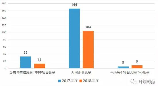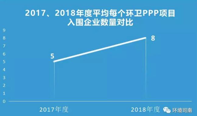 2018年度,平均每個環(huán)衛(wèi)PPP項目有8家入圍企業(yè)/聯(lián)合體: