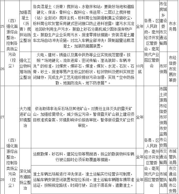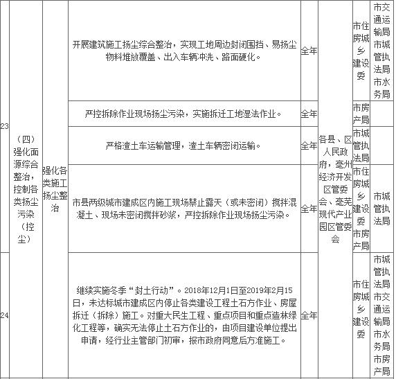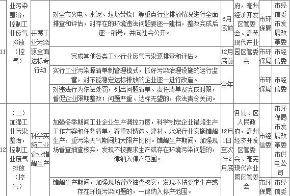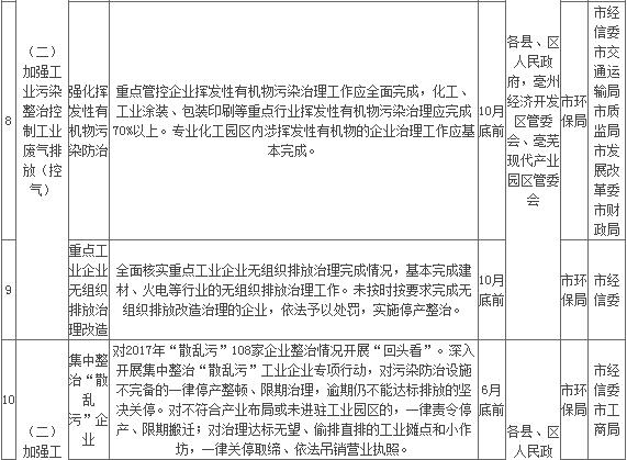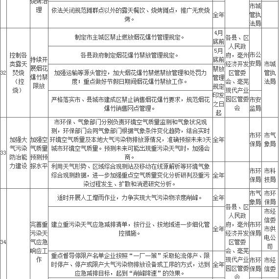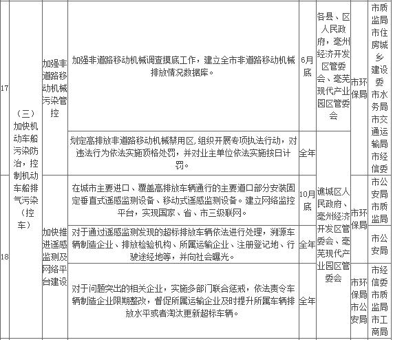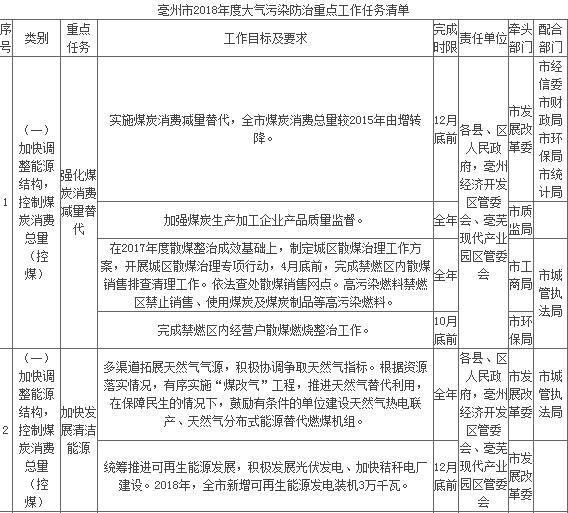 附件:亳州市2018年大氣污染防治重點工作任務(wù)清單