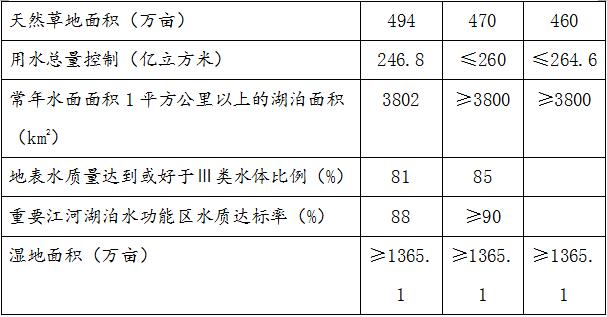 ——草地。到2020年,全省天然草地退減速度得到有效遏制,天然草地面積控制在470萬畝,天然草場、高山草甸、草地自然保護區(qū)等資源得到全面保護,草地生態(tài)環(huán)境得到改善,草地生態(tài)系統(tǒng)自我修復(fù)能力增強;人工種草和草地改良技術(shù)得到有效提高;初步建立以草地生態(tài)補助獎勵機制、草地監(jiān)測評價考核等為主要內(nèi)容的草地休養(yǎng)生息保障制度。