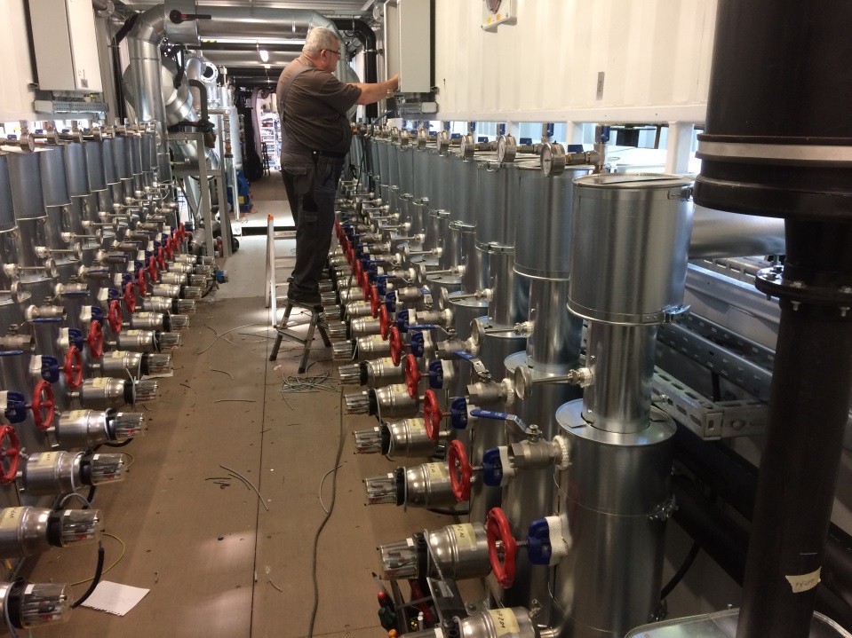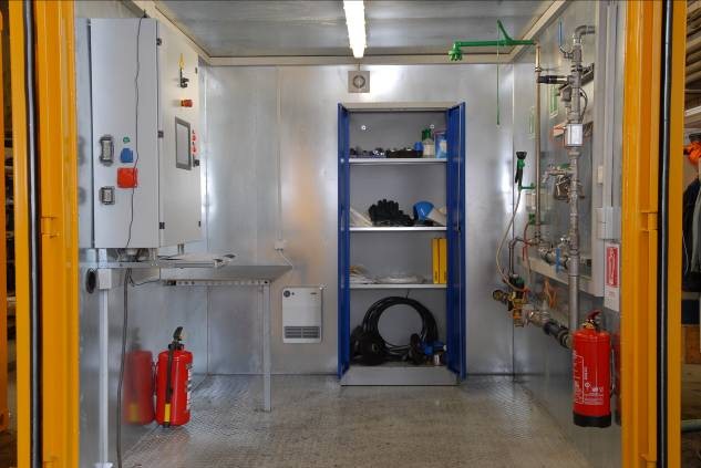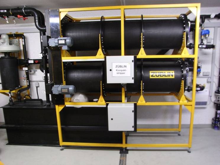 圖1:水平緊湊集裝箱式吹脫設備。特點:單線去除率99.98%, 自凈功能,節(jié)能,移動性強,空間需求低,抗凍防雨。