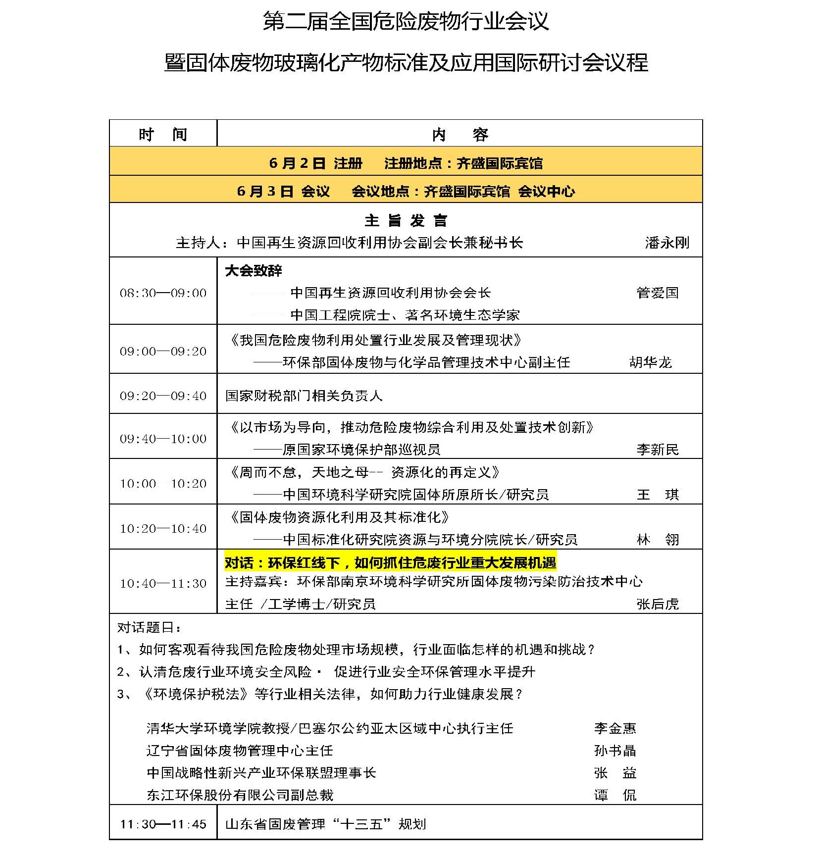 為了深入剖析國家產(chǎn)業(yè)政策對危廢行業(yè)的深遠影響,理性判斷危廢市場投資方向,2018年6月3日,中再危廢和中國環(huán)聯(lián)在山東省淄博市舉辦“第二屆全國危險廢物行業(yè)會議暨固體廢物玻璃化產(chǎn)物標(biāo)準(zhǔn)及應(yīng)用國際研討會”。與國內(nèi)外專家及企業(yè)家,共同研討環(huán)保紅線下,如何通過經(jīng)營模式轉(zhuǎn)化和技術(shù)提升抓住危廢行業(yè)重大發(fā)展機遇。