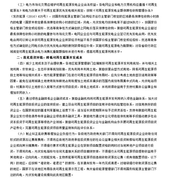 制止糾正亂收費(fèi)等增加企業(yè)負(fù)擔(dān)行為。各級地方政府有關(guān)部門不得向可再生能源投資企業(yè)收取任何形式的資源出讓費(fèi)等費(fèi)用,不得將應(yīng)由地方政府承擔(dān)投資責(zé)任的社會公益事業(yè)相關(guān)投資轉(zhuǎn)嫁給可再生能源投資企業(yè)或向其分?jǐn)傎M(fèi)用,不得強(qiáng)行要求可再生能源企業(yè)在獲取項(xiàng)目配置資格的同時(shí)對當(dāng)?shù)仄渌a(chǎn)業(yè)項(xiàng)目進(jìn)行投資,不得將風(fēng)電、光伏發(fā)電指標(biāo)與任何無直接關(guān)系的項(xiàng)目捆綁安排,不得強(qiáng)行從可再生能源項(xiàng)目提取收益用于其他用途。