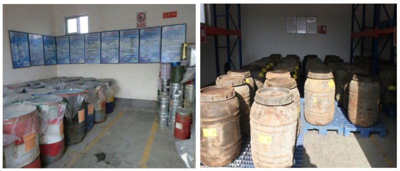 2、危險(xiǎn)廢物包裝容器上標(biāo)識(shí)明確;危險(xiǎn)廢物按種類(lèi)分別存放,且不同類(lèi)廢物間有明顯的間隔(如過(guò)道等)。
