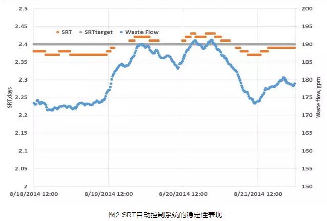 采用硝化處理工藝的加州Chico污水處理廠,由于碎絮(pin floc)問題,出水濁度較高,硝化工藝時常出現(xiàn)異常,造成氯的使用劑量上升,某些情況下糞大腸菌的數(shù)量甚至高于美國國家污染物排放削減制度(NPDES)規(guī)定的限值。在安裝SRT控制系統(tǒng)并對SRT設(shè)定值進行季節(jié)性優(yōu)化之后,這些問題發(fā)生的頻率顯著下降,氯的用量也明顯減少。同樣地,Sacramento區(qū)域污水處理廠在采用SRT控制系統(tǒng)后,出水水質(zhì)和氯用量都到了明顯優(yōu)化,每年的運行費用節(jié)省超過10萬美元。
