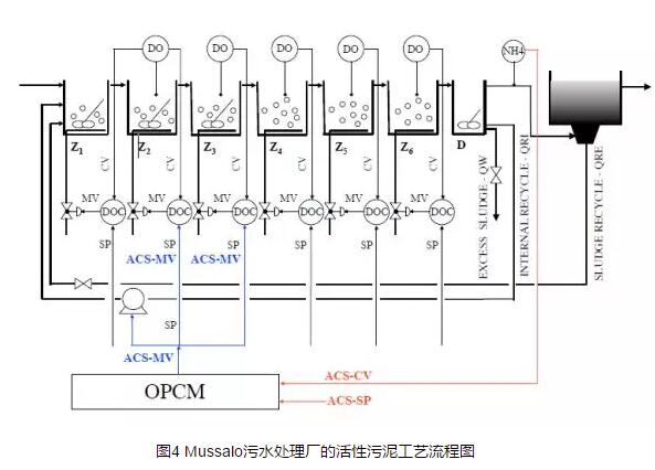 ACS可對污水處理廠運行過程中的關(guān)鍵工藝參數(shù)和能耗進行控制和監(jiān)管,范圍小至某一工藝單元,大至整個污水廠,在優(yōu)化污水廠運行成本的同時,保證出水水質(zhì)符合相關(guān)標準。其主要通過兩個模塊來實現(xiàn)目標控制——最優(yōu)過程控制模塊(OPCM,optimal process control module)和統(tǒng)計過程控制模塊(SPCM,statistical process control module)。對于Mussalo污水處理廠,OPCM主要用于控制生物反應(yīng)器出水中氨的濃度,同時最小化運行成本;而SPCM主要用于對污水廠的數(shù)據(jù)和信息進行預(yù)處理、選擇和補充,在其從內(nèi)部傳輸至OPCM之前。在Mussalo污水處理廠的ACS初步部署工程中,兩個模塊獨立工作。