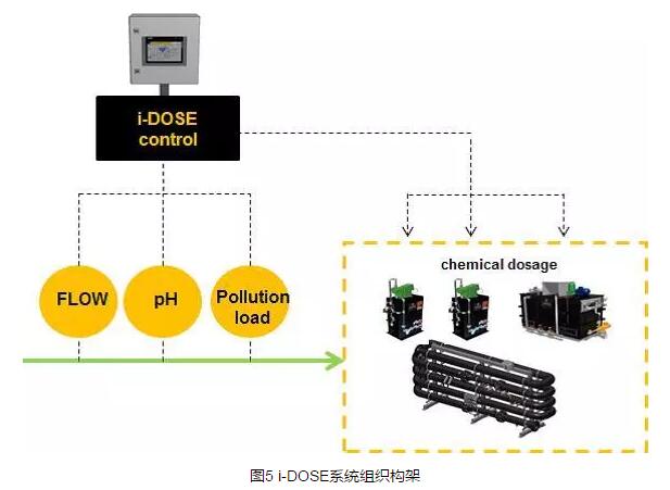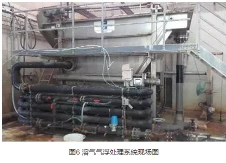 通過實時監(jiān)測進水的COD負荷,不僅可以優(yōu)化每個生產(chǎn)日不同階段的藥劑投加量,還可以計算出DAF系統(tǒng)的氣固比(A/S,air to solids ratio),以確定所需的曝氣量或氣壓。通過特制的TOC分析儀測定廢水的TOC值,然后根據(jù)經(jīng)過實驗分析得出的不同產(chǎn)品處理廢水的TOC/COD比值,確定相應(yīng)的COD值,實現(xiàn)COD負荷的實時監(jiān)測;然后通過正反饋控制系統(tǒng),即可根據(jù)COD負荷實時優(yōu)化絮凝劑、pH調(diào)節(jié)劑及聚合物的投加量。圖5和圖6分別為i-DOSE系統(tǒng)的組織構(gòu)架以及DAF處理系統(tǒng)的現(xiàn)場圖。