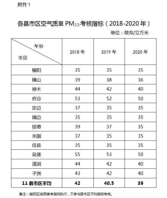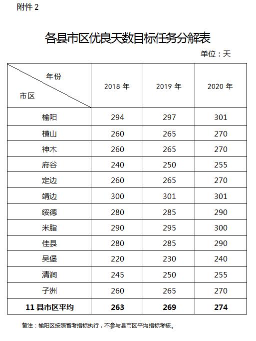 (二)工作目標(biāo)。以可吸入顆粒物(PM10)和細(xì)顆粒物(PM2.5)防治為重點(diǎn),協(xié)同推進(jìn)氮氧化物、揮發(fā)性有機(jī)物等臭氧前體污染物控制。到2020年,榆林城區(qū)優(yōu)良天數(shù)比例達(dá)到82.5%(301天),細(xì)顆粒物(PM2.5)濃度達(dá)到35微克/立方米。其余各縣市區(qū)優(yōu)良天數(shù)比例達(dá)到75%(274天),細(xì)顆粒物(PM2.5)濃度較2017年下降8%(39微克/立方米)。全市可吸入顆粒物(PM10)明顯下降,重污染天數(shù)明顯減少,二氧化氮濃度上升和臭氧污染加重的趨勢得到遏制,二氧化硫、一氧化碳年均濃度基本達(dá)到國家環(huán)境空氣質(zhì)量二級標(biāo)準(zhǔn)。