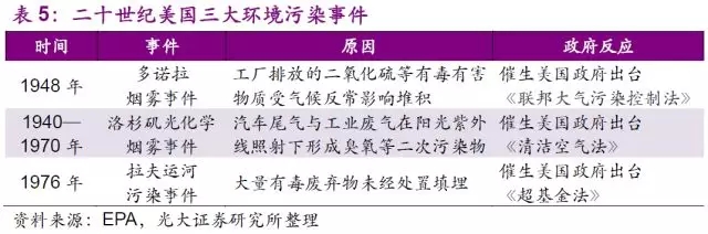 環(huán)保治理的投資隨著時(shí)間累積日益增長(zhǎng),發(fā)達(dá)國家的政府已逐步意識(shí)到“先污染后治理”的成本要遠(yuǎn)高于一開始就以“對(duì)環(huán)境負(fù)責(zé)”的態(tài)度處置廢物。經(jīng)歷過1948年的多諾拉SO2污染、1940—70年間的洛杉磯光化學(xué)污染、以及1976年的拉夫運(yùn)河廢物污染等事件后,公眾對(duì)環(huán)境治理的呼聲達(dá)到了頂峰。美國政府在出臺(tái)相應(yīng)法律法規(guī)規(guī)范環(huán)保行為時(shí),對(duì)環(huán)保處置設(shè)施的要求也在不斷的提升中。