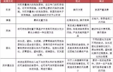主要的危險廢物最終處置方式比較