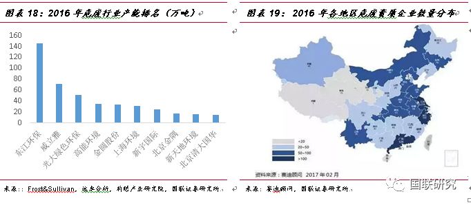 從2016年核準(zhǔn)經(jīng)營規(guī)模(6471萬噸/年)和危廢實際產(chǎn)生量(1.07-1.24億噸/年)來看,供需缺口仍然較大,未來將逐步產(chǎn)生兩個行業(yè)趨勢,一是現(xiàn)有的有效處置能力仍有較大的提升空間,主要是大型龍頭企業(yè)的危廢收集能力將持續(xù)提升,有效處理能力不斷提高,比如東江環(huán)保目前的總產(chǎn)能利用率已經(jīng)達到60%,遠高于行業(yè)平均水平,未來仍有提升空間,相對應(yīng)的中小企業(yè)將日趨艱難,行業(yè)龍頭的集中效應(yīng)將繼續(xù)凸顯;二是牌照發(fā)放仍有空間,牌照資質(zhì)對企業(yè)技術(shù)要求很高,涉及焚燒、化學(xué)、安全等方面的問題,同時建設(shè)周期很長,涉及土地選址、立項、環(huán)評、驗收等手續(xù),行業(yè)將呈現(xiàn)強者恒強的格局,中小企業(yè)面臨市場份額被擠占,市場將誕生規(guī)模較大、布局范圍廣泛、有先發(fā)優(yōu)勢的龍頭企業(yè)。