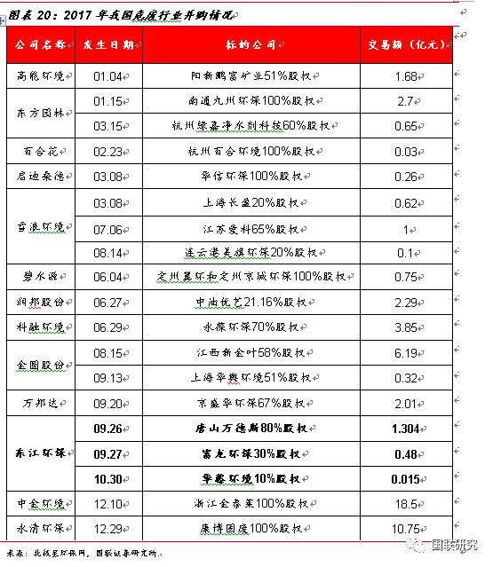 行業(yè)并購熱度高,進入群雄逐鹿時代。在過去的2017年,我國危廢行業(yè)兼并購市場火爆,整個環(huán)保產(chǎn)業(yè)共發(fā)生86起并購,交易金額達385億元,交易金額與數(shù)量均創(chuàng)新高,其中涉及到危廢的并購市場達20余起。