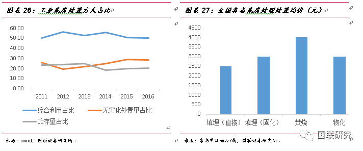工業(yè)危廢的無害化處置將成為主流。工業(yè)危廢提出“三化”處理原則,即減量化、資源化和無害化,目前主要的處置方式有綜合利用、無害化處置和貯存等。從近幾年的綜合利用、無害化處置方式占比情況看,綜合利用占比整體變化不大,在50%左右,無害化處置方式2016年占比為28.74%,占比在逐年提升,未來預(yù)計將會復(fù)制垃圾焚燒發(fā)電的技術(shù)路線。綜合利用包括回收利用、循環(huán)再生等資源化利用方式。如印刷線路板、電鍍污泥、廢鉛酸電池等很多廢棄物都可進行資源化處理,這些固廢含有大量的銅、銀、鎳等重金屬,可以回收使之資源化,提升效益。其利潤來源主要受到貴金屬等大宗商品價格波動的影響。無害化處理方式主要包括破碎、分選、沉降、廢液酸堿中和等物理化學(xué)處理、焚燒熱解及填埋等,其中焚燒處置危險廢物在世界上應(yīng)用廣泛,是最成熟的一種熱處理技術(shù),國內(nèi)的焚燒處理價格相對其他處理方式更高,國內(nèi)焚燒平均價格在2000-4000元/噸不等,有的地區(qū)甚至更高,價格和廢棄物的處理難度和污染成分有關(guān),同時商業(yè)運營模式清晰,未來將成為主流的危廢處置方式。