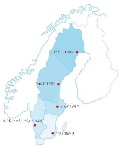 2000年,《歐盟水框架指令》開始實施,歐盟各成員國的水資源管理工作的開展更協(xié)調(diào)、更統(tǒng)一。自2004年起,為了更有效地管理水環(huán)境,瑞典被劃分為五大水資源區(qū)(如圖1、2所示),每個區(qū)包含多個江河流域。瑞典總共有119個主要的江河流域,這些流域是地方水資源管理工作的起點。這五大水資源區(qū)是按照它們與海床的地理區(qū)域關(guān)系劃分的,這些海床包括:波的尼亞灣區(qū)、波的尼亞海區(qū)、北波羅的海區(qū)、南波羅的海區(qū)、斯卡格拉克與卡特加特海峽區(qū)等。此后瑞典在五大水資源區(qū)開展水資源管理工作。
