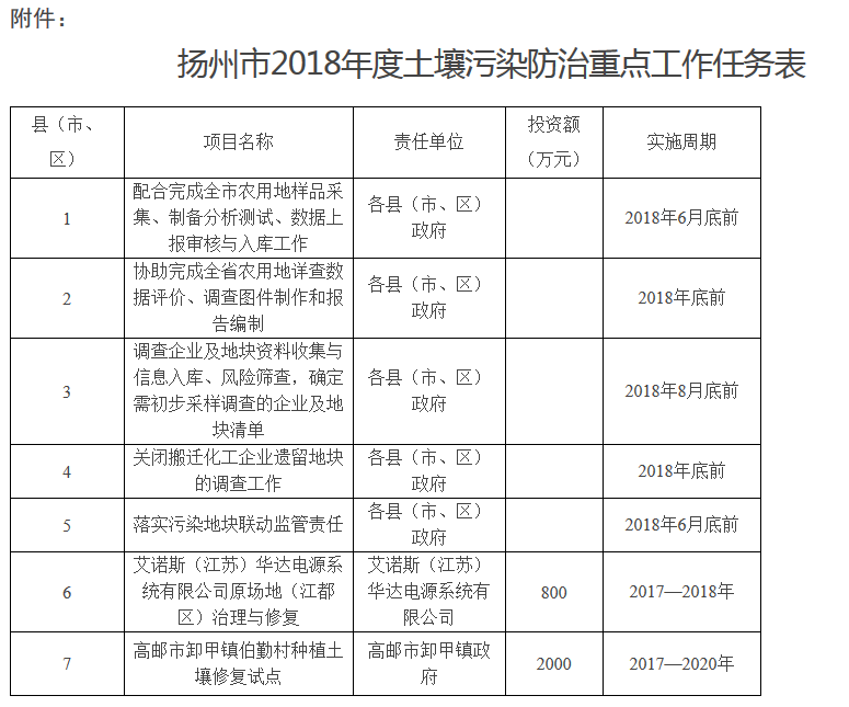 附件:揚州市2018年度土壤污染防治重點工作任務(wù)表