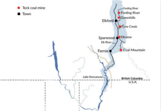 麋鹿河及泰克資源公司煤礦點,圖片來源:TheNarwhal