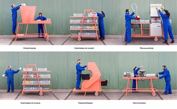 Bureau SLA 和Overtreders W 是兩家總部位于阿姆斯特丹的設(shè)計(jì)公司,它們正在把塑料垃圾轉(zhuǎn)變?yōu)閸湫碌慕ㄖ牧??!爸腔鄣牡图夹g(shù)等同于嶄新的高技術(shù)”正是他們的設(shè)計(jì)理念。 “美麗塑料車間項(xiàng)目”是獨(dú)一無(wú)二的創(chuàng)新項(xiàng)目,由建筑師和設(shè)計(jì)師合作,把塑料垃圾制作成可用的建筑外立面材料。這一創(chuàng)新團(tuán)隊(duì)認(rèn)為世上不存在廢物,除了制造時(shí)被賦予的功能,任何物品都有更多的功能,塑料尤其如此。