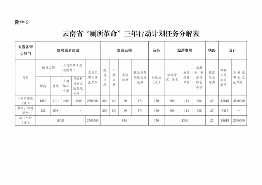 2.云南省“廁所革命”三年行動計劃任務(wù)分解表