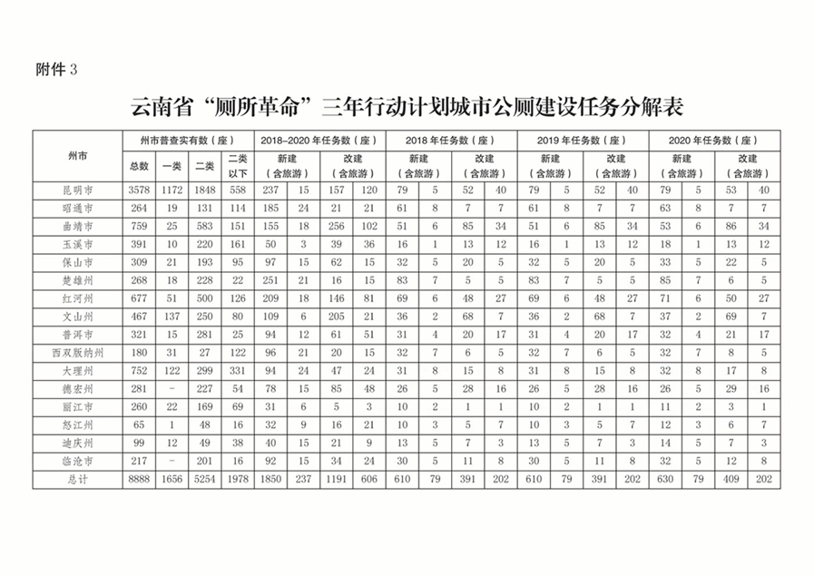 3.云南省“廁所革命”三年行動計劃城市公廁建設(shè)任務(wù)分解表
