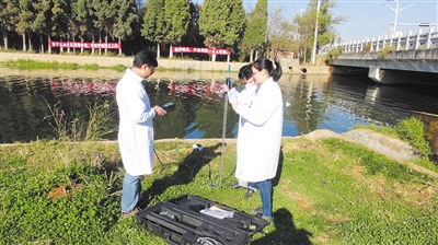 課題組工作人員在現(xiàn)場(chǎng)提取水樣