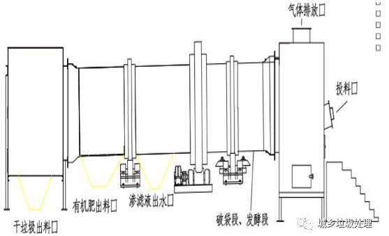 工藝流程:通過投料口進料到垃圾分選設(shè)備內(nèi),由垃圾破袋設(shè)備將包裝袋破袋,物料下落經(jīng)過分選設(shè)備分選為幾大類,滾筒內(nèi)的60%左右的有機質(zhì)垃圾進行發(fā)酵,其中還可加入具有特定功能的微生物菌種進行好氧處理或厭氧發(fā)酵,其過程不少于15天進行充分反應(yīng),加速發(fā)酵過程,有機物經(jīng)過充分發(fā)酵后成為有機肥,其他干垃圾可熱解氣化。