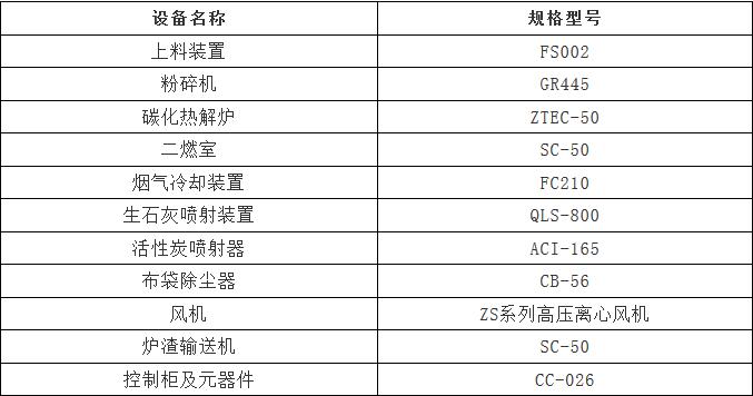 因垃圾碳化熱解過程中產(chǎn)生的酸性氣體達到國家排放標(biāo)準(zhǔn),生石灰噴射裝置主要作為非正常工況下的應(yīng)急措施,并采用噴射生石灰干粉,工藝簡單,實現(xiàn)脫硫、脫有害氣體的目的。生石灰干粉的投放量,根據(jù)煙氣中二氧化硫和有害氣體的含量多少而定,以確保用量的經(jīng)濟性。