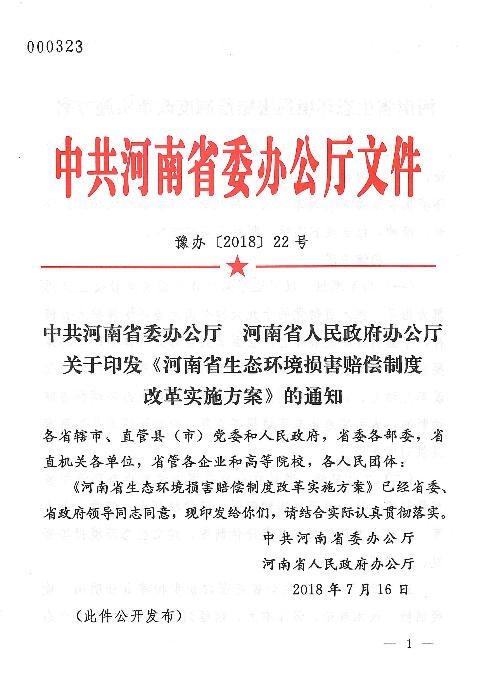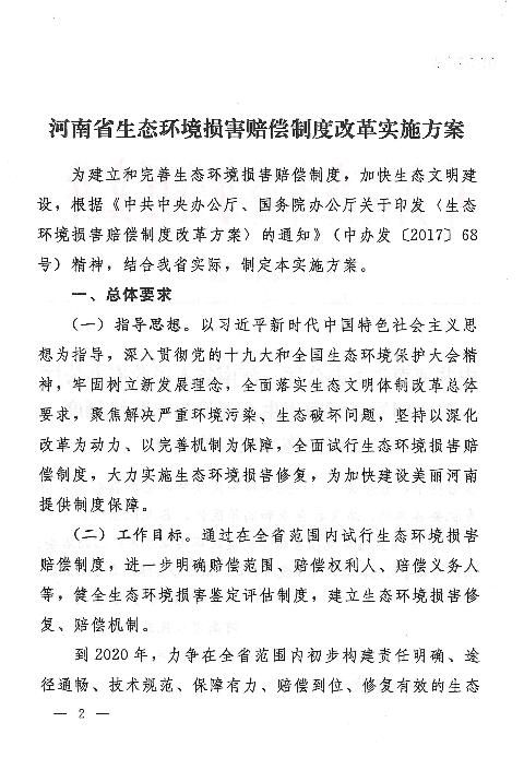 河南省生態(tài)環(huán)境損害賠償制度改革實施方案