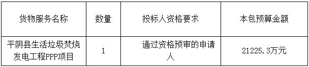 二、采購項目名稱:平陰縣生活垃圾焚燒發(fā)電工程PPP項目