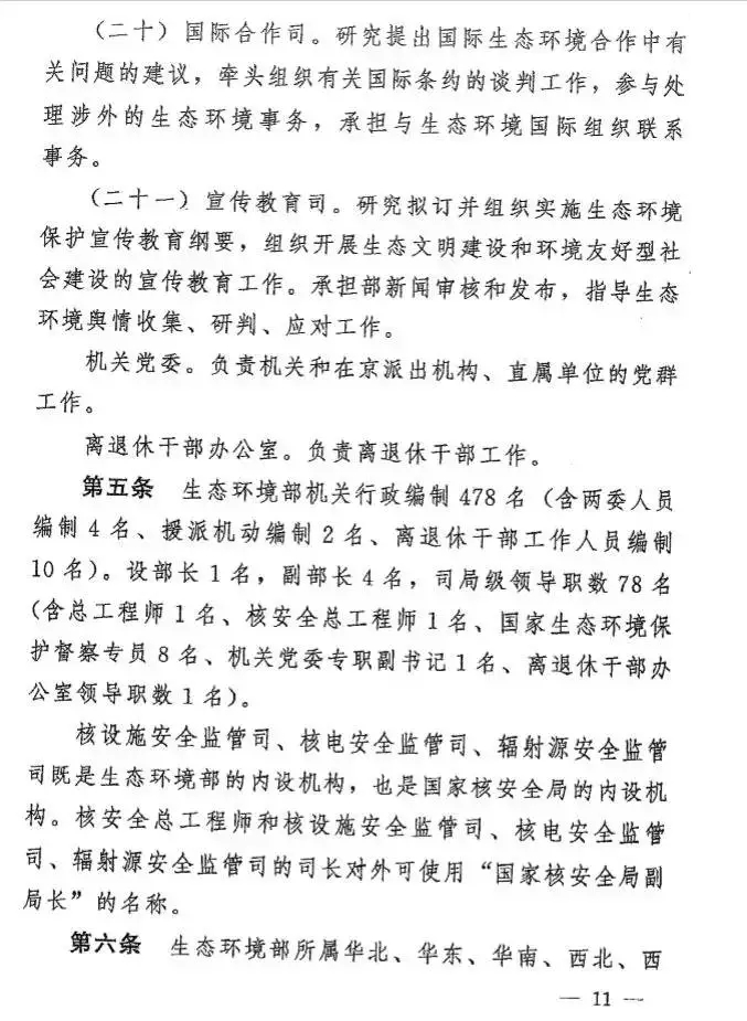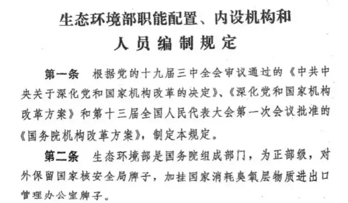 據(jù)有關(guān)人士透露,這一方案在原環(huán)境保護(hù)部“三定”方案基礎(chǔ)上,有了很多不同。明確生態(tài)環(huán)境部是國務(wù)院組成部門,為正部級,對外保留國家核安全局牌子,加掛國家消耗臭氧層物質(zhì)進(jìn)出口管理辦公室牌子。