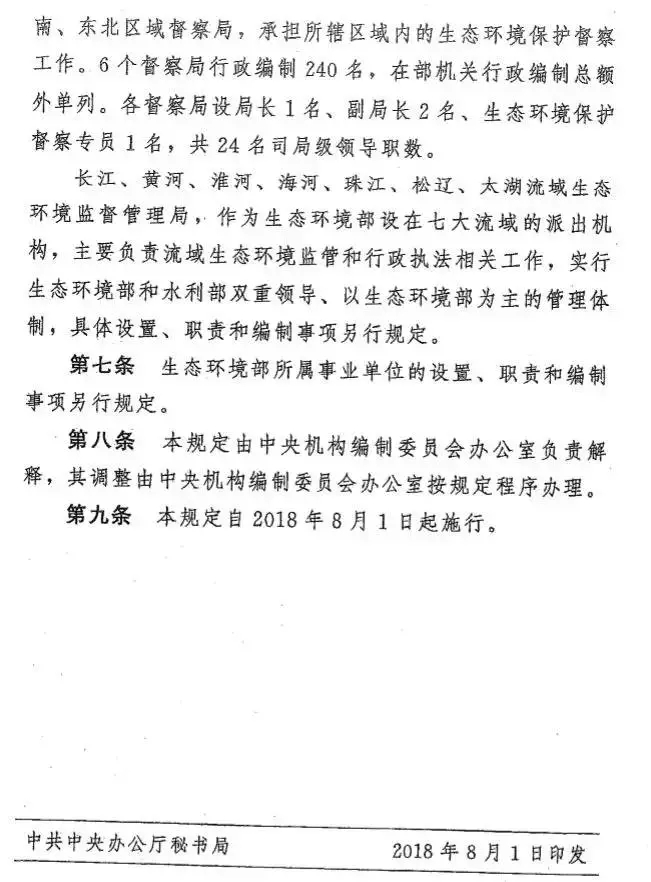 這位人士透露,根據(jù)需要,生態(tài)環(huán)境部所屬華北、華東、華南、西北、西南、東北區(qū)域督察局,承擔(dān)所轄區(qū)域內(nèi)的生態(tài)環(huán)境保護(hù)督察工作。長江、黃河、淮河、海河、珠江、松遼、太湖流域生態(tài)環(huán)境監(jiān)督管理局,作為生態(tài)環(huán)境部設(shè)在七大流域的派出機(jī)構(gòu),主要負(fù)責(zé)流域生態(tài)環(huán)境監(jiān)管和行政執(zhí)法相關(guān)工作,實(shí)行生態(tài)環(huán)境部和水利部雙重領(lǐng)導(dǎo)、以生態(tài)環(huán)境部為主的管理體制,具體設(shè)置、職責(zé)和編制事項(xiàng)另行規(guī)定。