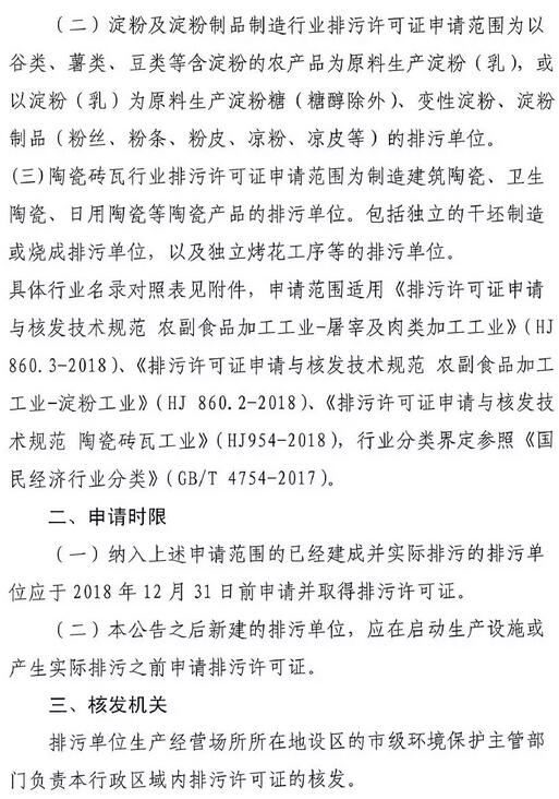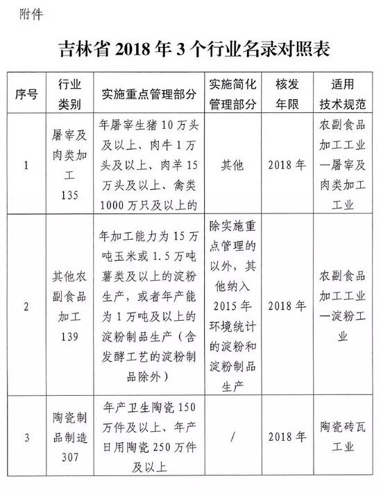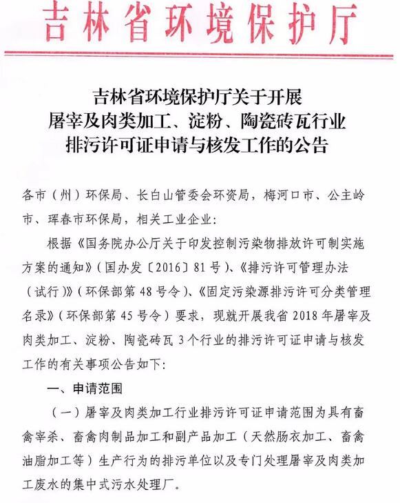 吉林開展2018年屠宰及肉類加工、淀粉、陶瓷磚瓦行業(yè)排污許可證申請與核發(fā)工作