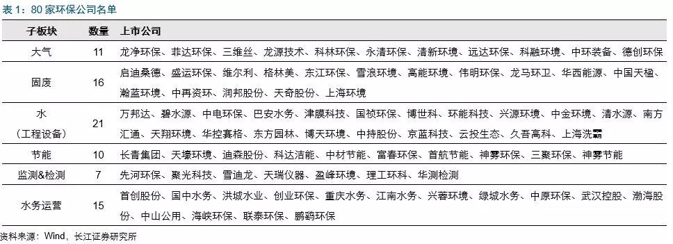 環(huán)保板塊上市公司2018年中報(bào)均已披露完畢,我們選取80家公司,包括大氣(11家)、固廢(16家)、水(工程設(shè)備,21)、節(jié)能(10家)、監(jiān)測(cè)&檢測(cè)(7家)和水務(wù)運(yùn)營(yíng)(15家)六個(gè)細(xì)分板塊進(jìn)行分析。