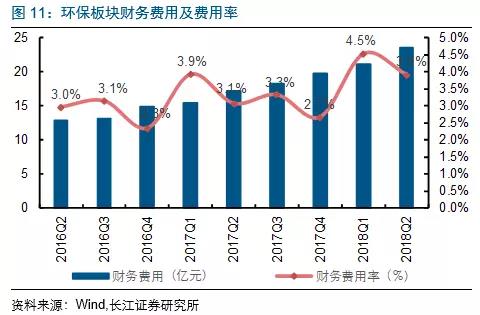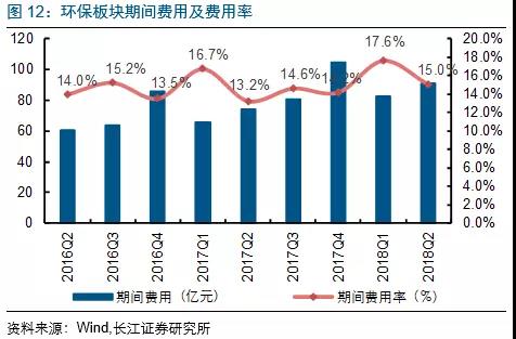 2018Q2環(huán)保板塊期間費(fèi)用累計(jì)支出約90.8億元,同比增22.5%;其中,大氣(9.4億元,同比增12.8%)、固廢(23.4億元,同比增24.3%)、水(工程設(shè)備)(21.8億元,同比增33%)、節(jié)能(10.5億元,同比增13.1%)、監(jiān)測(cè)&檢測(cè)(9.5億元,同比增22.3%)及水務(wù)運(yùn)營(yíng)板塊(16.2億元,同比增20.1%);期間費(fèi)用率提升1.8pct至15%。其中銷售費(fèi)用率2.6%,同比增0.2pct;管理費(fèi)用率8.5%,同比增0.5pct;財(cái)務(wù)費(fèi)用率3.9%,同比增0.8pct。財(cái)務(wù)費(fèi)用率繼續(xù)呈現(xiàn)單季度上升趨勢(shì),與當(dāng)下融資成本大幅度上升有關(guān)。