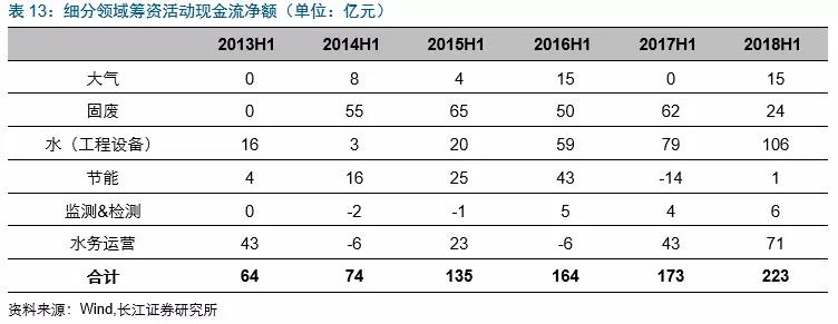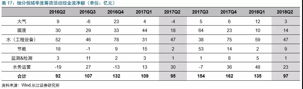 2018Q2水務(wù)運(yùn)營(yíng)板塊籌資活動(dòng)現(xiàn)金流凈額同比減少7億,主要是首創(chuàng)環(huán)境融資活動(dòng)現(xiàn)金流凈額同比減少約14億(由37億到23億)。
