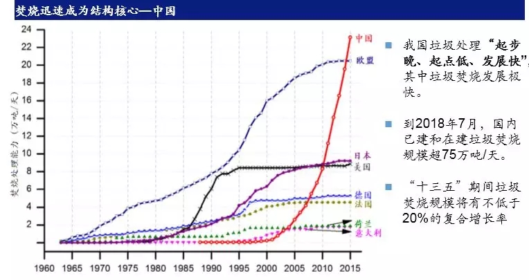 接著分別介紹了全球不同區(qū)域的垃圾處理狀況,分析了歐州、英國(guó)、美國(guó)、日本等國(guó)家的垃圾處理能力,總結(jié)了國(guó)際垃圾處理的發(fā)展形勢(shì):英國(guó)垃圾焚燒成為歐洲最大的新興市場(chǎng);日本不同類型焚燒設(shè)施總數(shù)減少但大廠增加,總處理量基本穩(wěn)定,發(fā)展相對(duì)成熟;美國(guó)近年來處于停滯狀態(tài);中國(guó)的垃圾處理發(fā)展正在進(jìn)入全速發(fā)展階段。