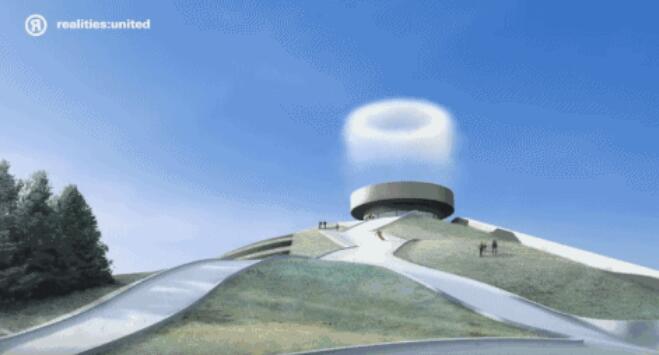 在滑雪道包圍的中心將建造一個百米高的煙囪,用于排放水汽。到了晚上,激光將被投射在煙圈上,造成炫目的視覺效果。