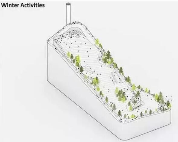 在垃圾焚燒發(fā)電廠的頂部,建造1500米長的綠道、藍(lán)道和黑鉆滑雪道供居民娛樂,而這些滑雪道是由回收利用的合成物料構(gòu)成的。