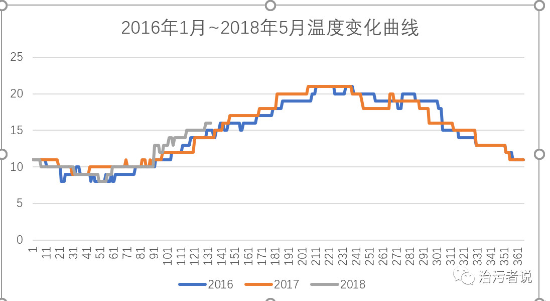 預(yù)管理措施的實(shí)施需要對(duì)廠內(nèi)的水溫變化進(jìn)行詳細(xì)的跟蹤和記錄。一個(gè)污水廠在運(yùn)行期間,由于所處地區(qū)不變,居民生活習(xí)慣不變,管網(wǎng)建設(shè)不變,因此每年水體溫度變化基本不會(huì)發(fā)生明顯的變化。作為預(yù)管理措施,需要對(duì)水體變化的溫度進(jìn)行詳細(xì)的記錄,當(dāng)積累到1~2年的溫度變化之后,就能夠準(zhǔn)確的判斷出一年中水溫的變化情況了。而預(yù)管理措施也能夠根據(jù)溫度的變化走勢(shì),提前采取運(yùn)行管理措施。