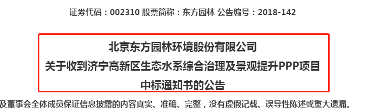9月7日晚間,東方園林公告稱,公司為濟(jì)寧高新區(qū)生態(tài)水系綜合治理及景觀提升PPP項(xiàng)目的中標(biāo)聯(lián)合體,項(xiàng)目總投資20.21億元。