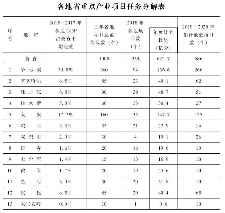 黑龍江省人民政府辦公廳關(guān)于印發(fā)全省重點產(chǎn)業(yè)項目建設(shè)三年行動計劃(2018—2020年)的通知